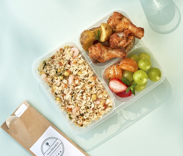 새우볶음밥 & 치킨봉 & 과일 도시락
